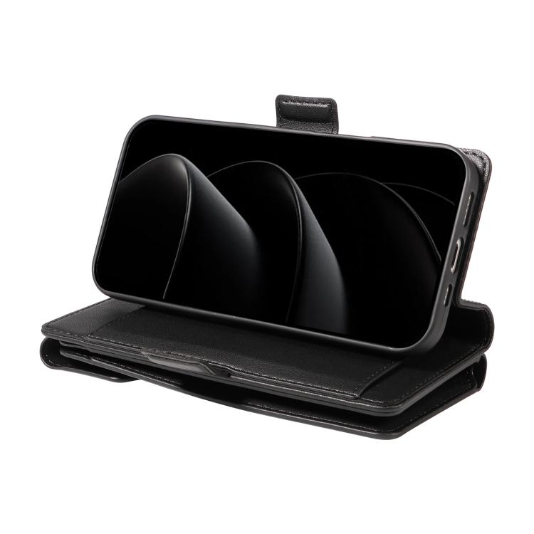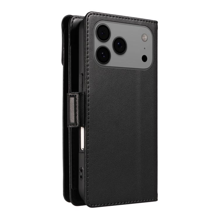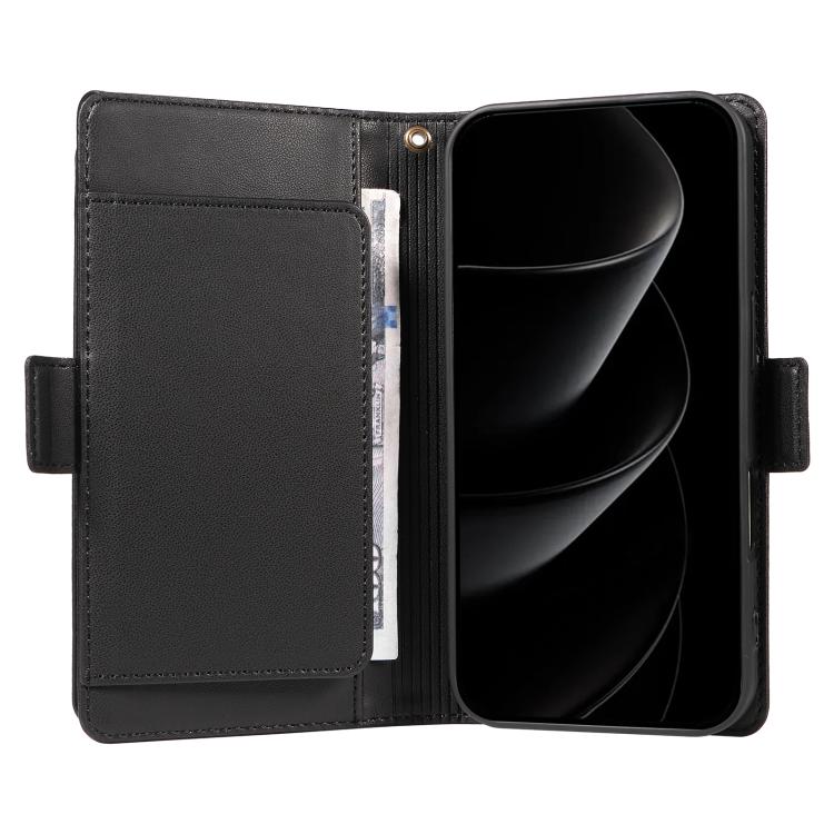 Funda de cuero con tarjetero para iPhone 17 Pro Max con correa (negra)