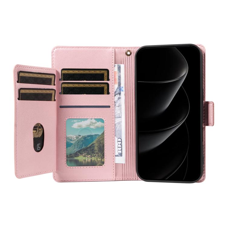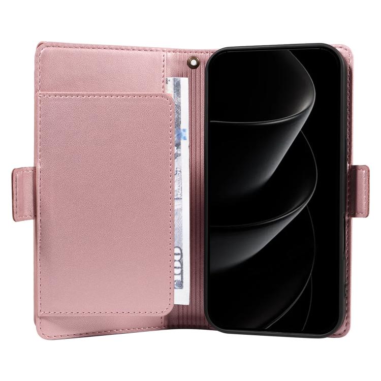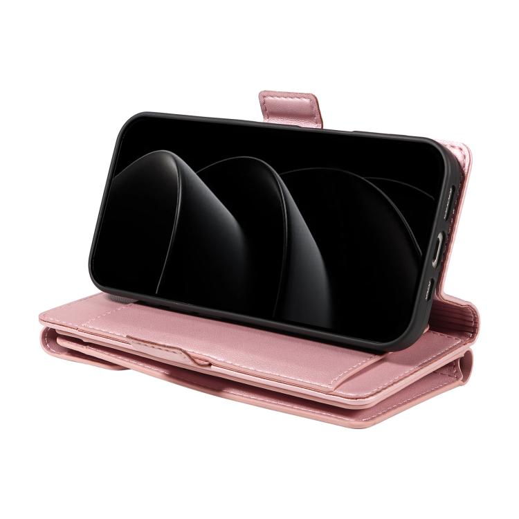 Funda de cuero con tarjetero para iPhone 17 Pro Max con correa (oro rosa)