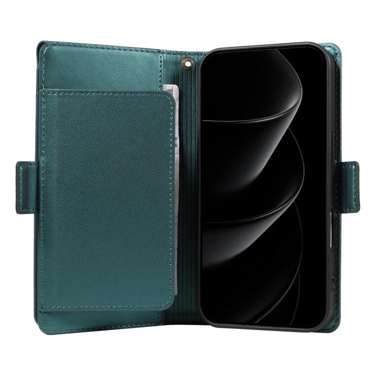 Funda de cuero con tarjetero para iPhone 17 Pro Max con correa (verde)