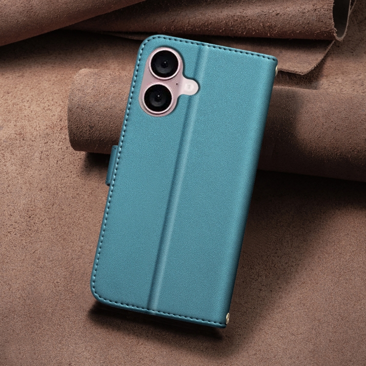 Funda de Cuero con Textura Cuadrada para iPhone 16 Plus (Verde)