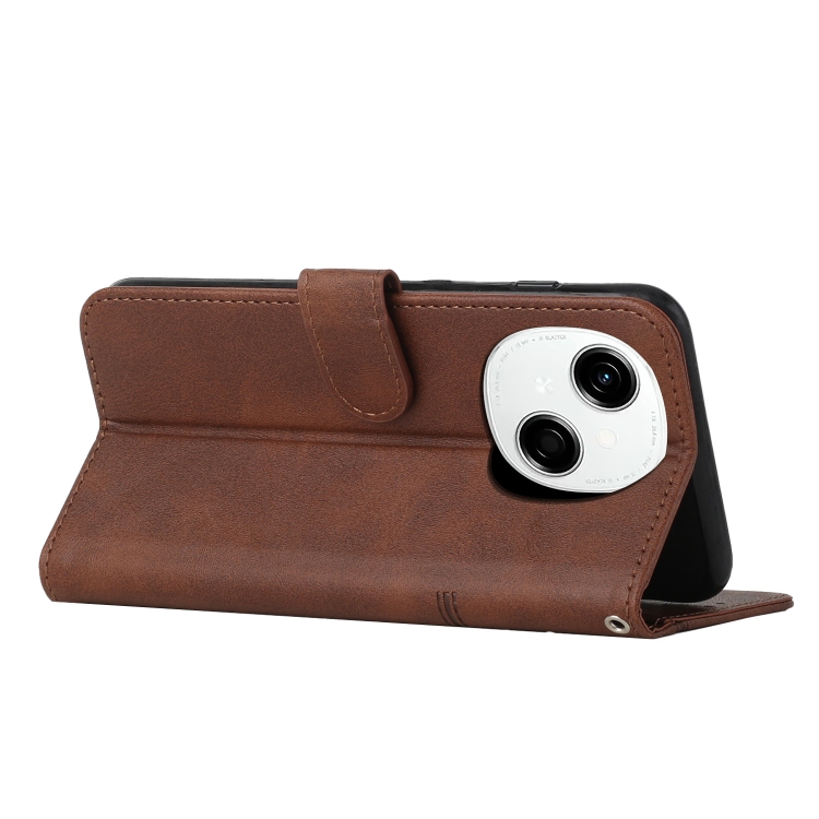 Funda de Cuero con Textura de Becerro y Hebilla para Tecno Spark Go 1 (Marrón)