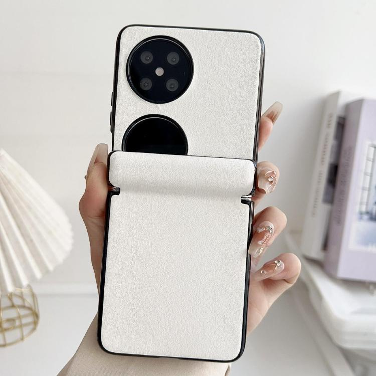 Funda de Cuero Huawei Pocket 2 con Textura y Eje Magnético Integrado (Blanco)