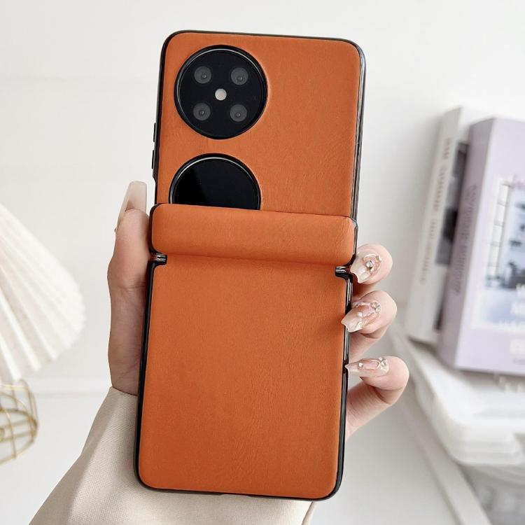 Funda de Cuero Huawei Pocket 2 con Textura y Eje Magnético Integrado (Naranja)
