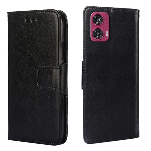 Funda de Cuero con Textura de Cristal para Motorola Edge 50 Fusion 5G (Negro)