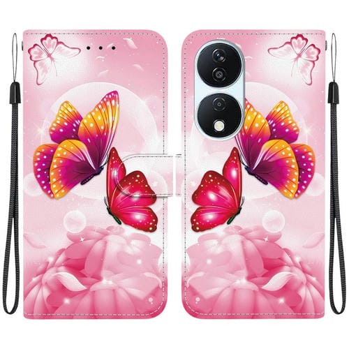 Funda de Cuero con Textura de Cristal y Dibujo para Honor X7B Play 50 Plus (Mariposas Rosas)