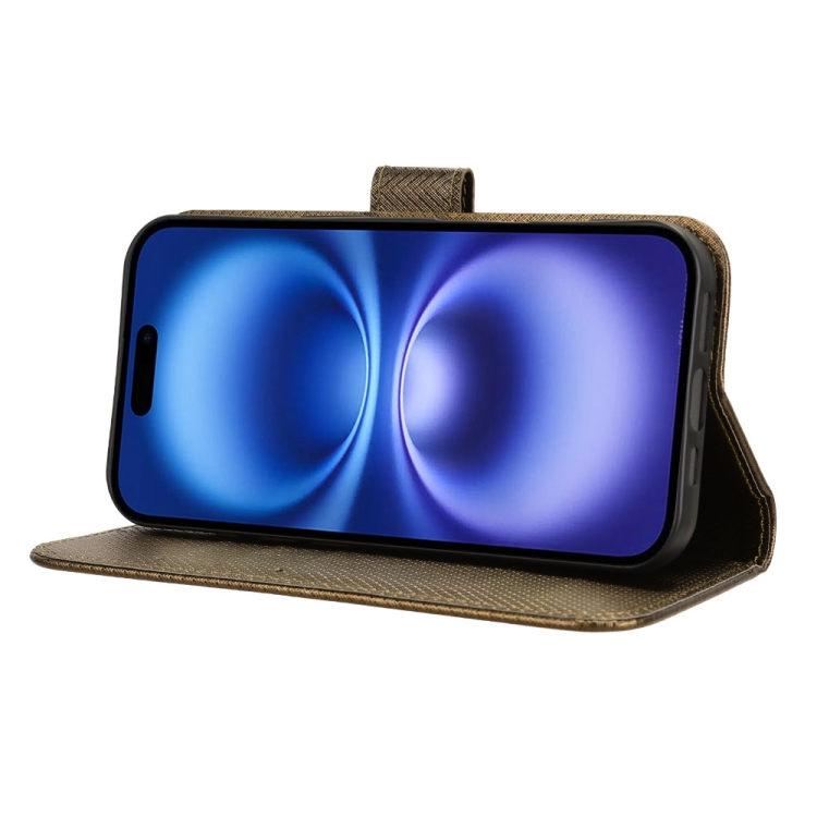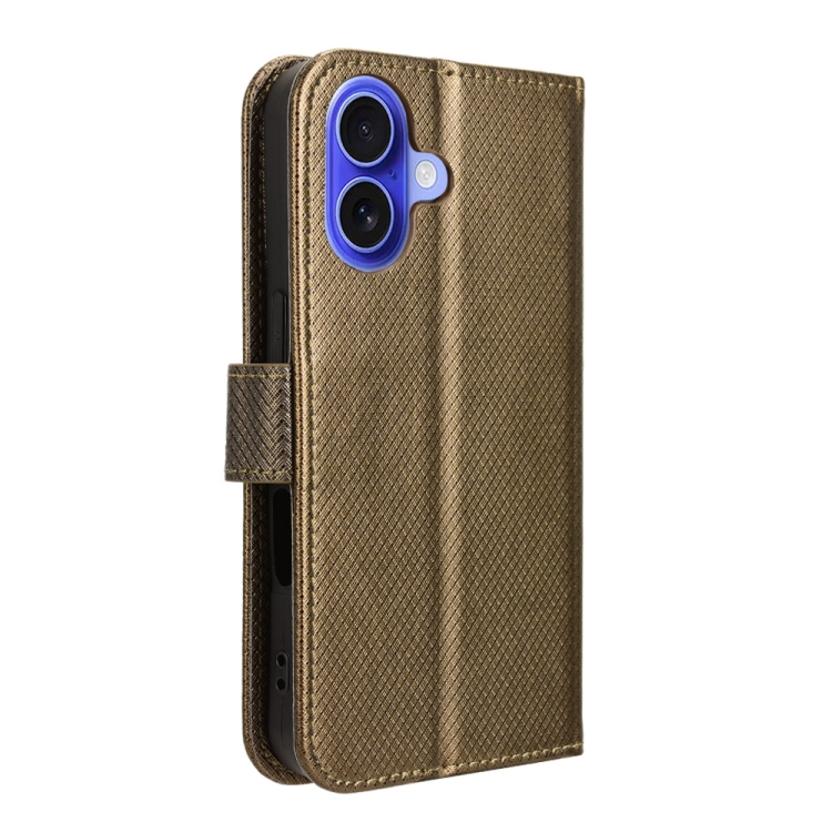 Funda para iPhone 16 Plus Cuero Textura de Diamante (Marrón)