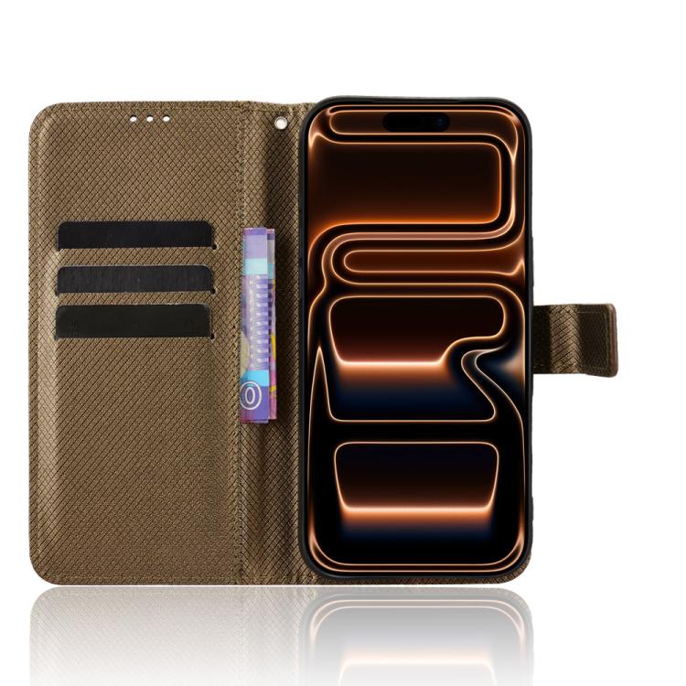 Funda de cuero con textura de diamante para iPhone 17 Pro Max (marrón)
