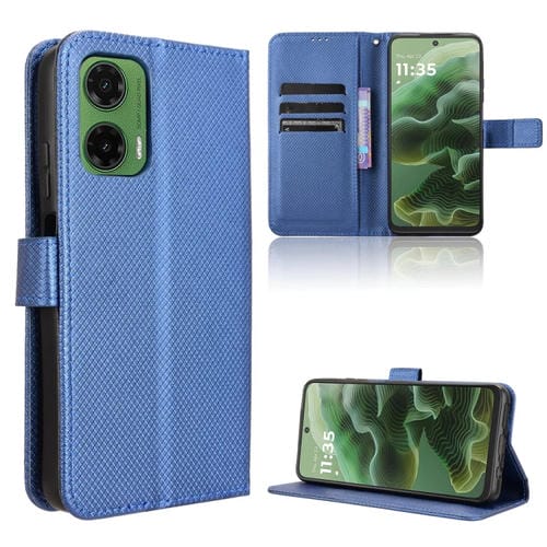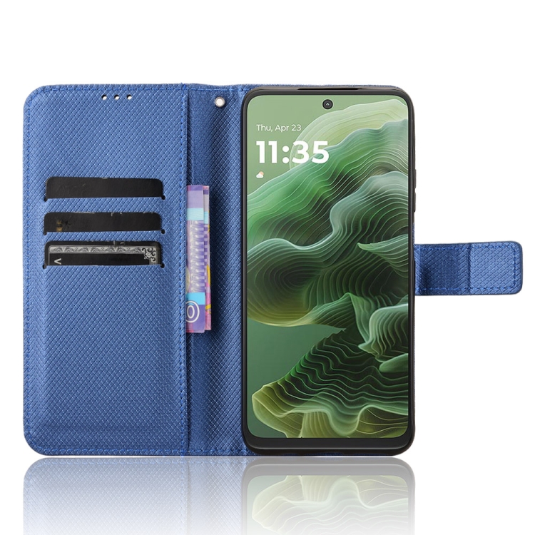Funda de Cuero con Textura de Diamante para Motorola Moto G35 5G (Azul)
