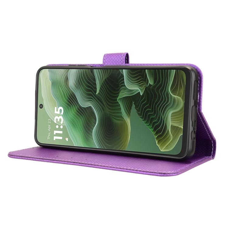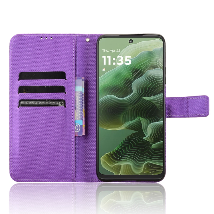 Funda de Cuero con Textura de Diamante para Motorola Moto G35 5G (Morado)