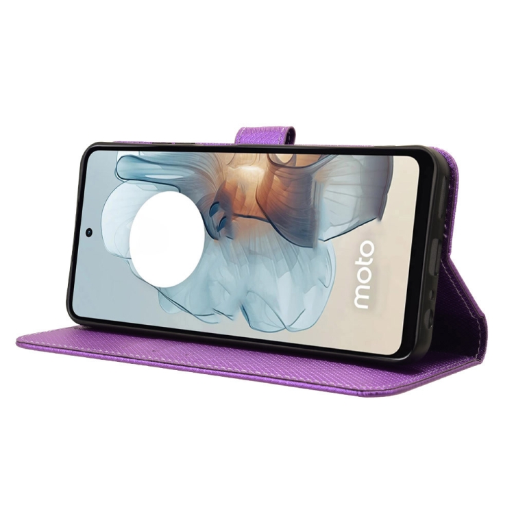 Funda de Cuero con Textura de Diamante para Motorola Moto G45 5G (Morado)