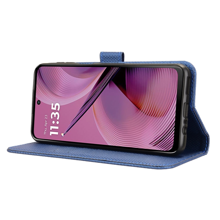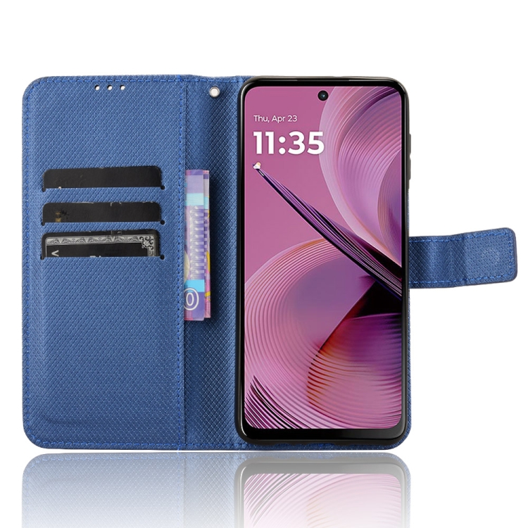 Funda de Cuero con Textura de Diamante para Motorola Moto G55 5G (Azul)
