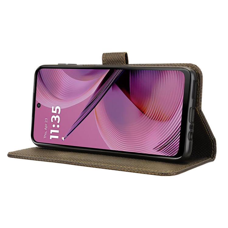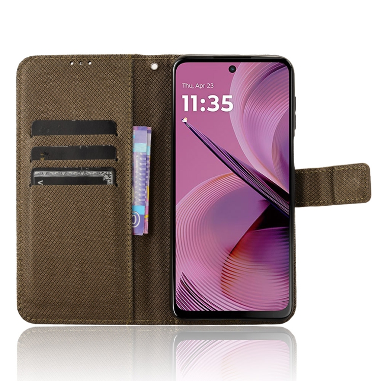 Funda de Cuero con Textura de Diamante para Motorola Moto G55 5G (Marrón)