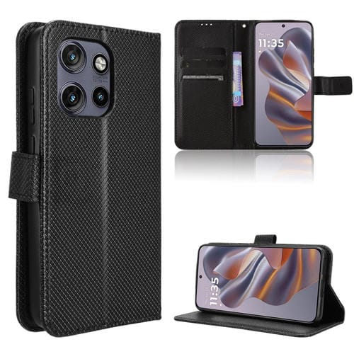 Funda de Cuero con Textura de Diamante para Motorola Moto S50 5G y Edge 50 Neo (Negra)