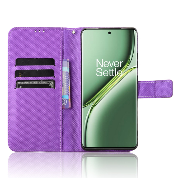 Funda de Cuero con Textura de Diamante para OnePlus Ace 3 Pro (Morado)