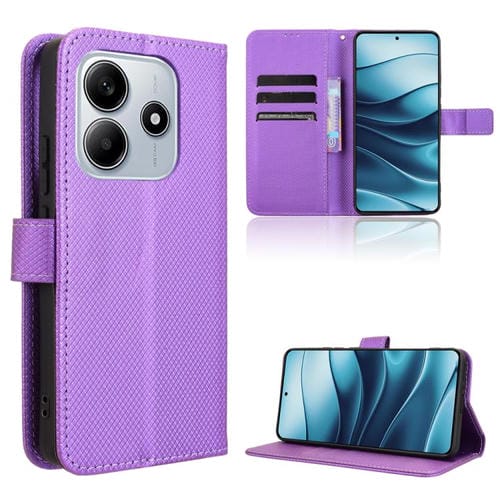 Funda de Cuero con Textura de Diamante para Redmi Note 14 4G Global (163,25mm) (Morado)