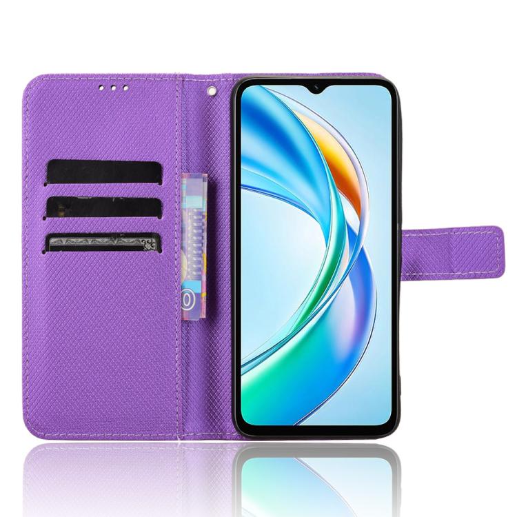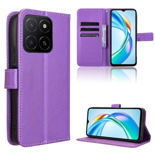 Funda de Cuero con Textura de Diamante para Honor X5B 4G (Morada)
