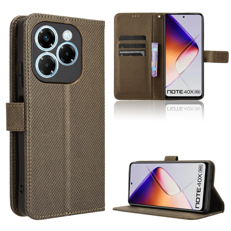 Funda de Cuero con Textura de Diamante para Infinix Note 40X 5G (Marrón)
