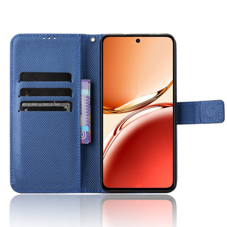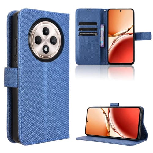 Funda de Cuero con Textura de Diamante para Oppo Reno12 F 5G (Azul)