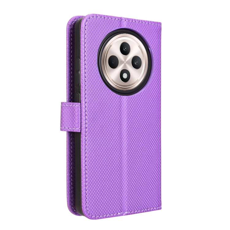 Funda de Cuero con Textura de Diamante para Oppo Reno12 F 5G (Morado)