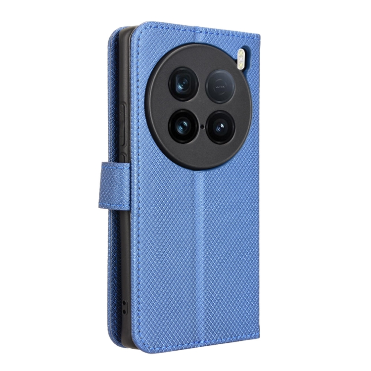 Funda de Cuero con Textura de Diamante para Vivo X100 Ultra 5G (Azul)
