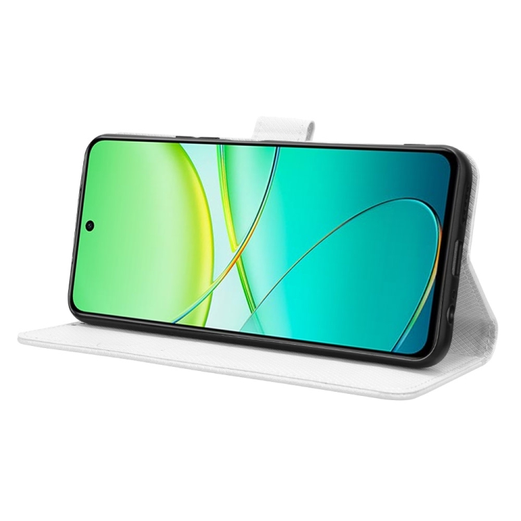 Funda de Cuero con Textura de Diamante para Vivo Y58 5G (Blanca)