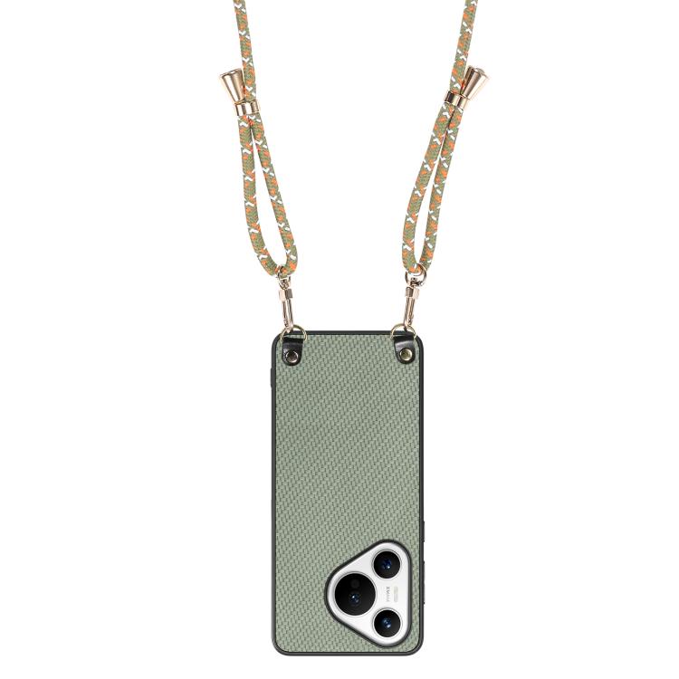 Funda de Cuero Huawei Pura 70 Ultra con Textura Fibra de Carbono y Correa Cruzada (Verde)