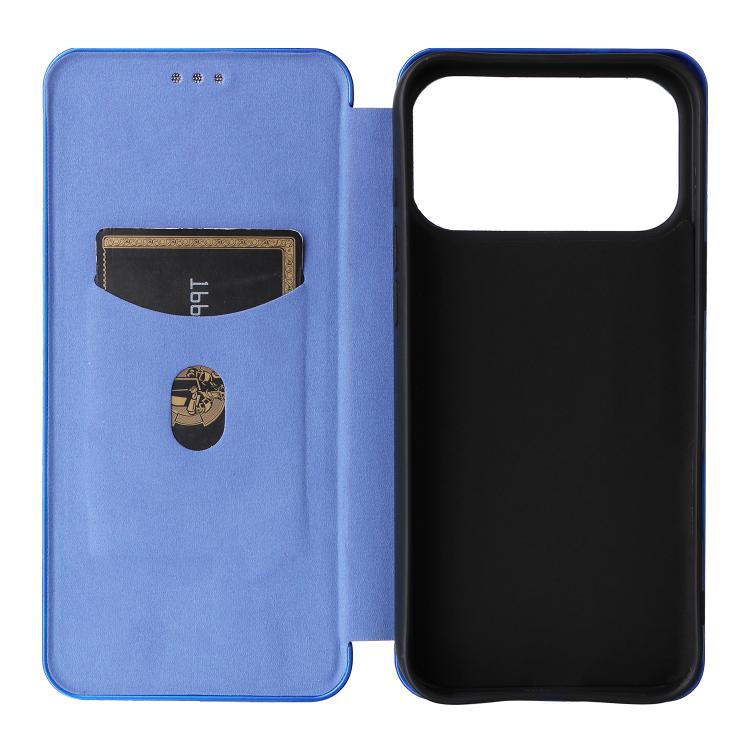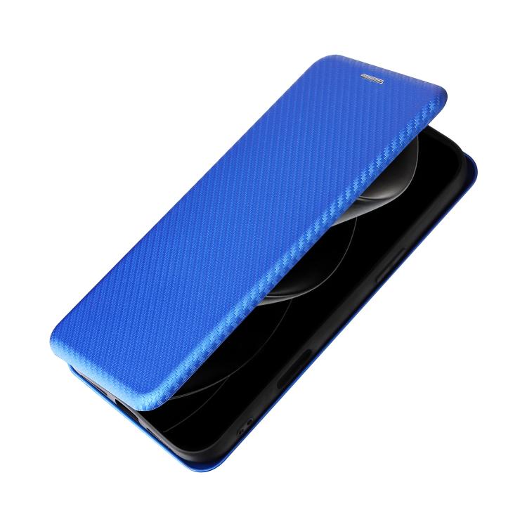 Funda de cuero con textura de fibra de carbono para iPhone 17 Pro Max (azul)