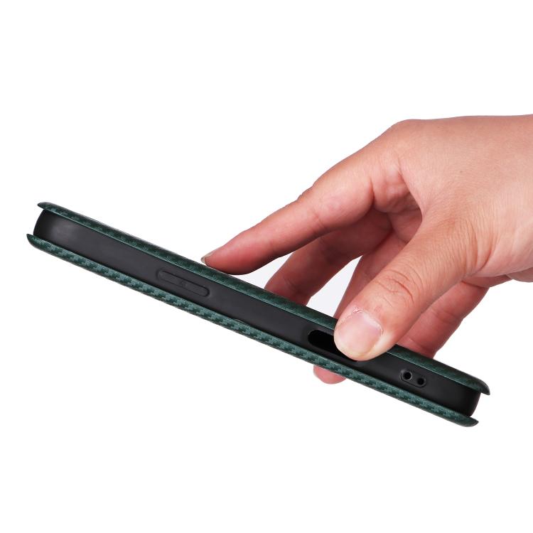 Funda de cuero con textura de fibra de carbono para iPhone 17 Pro Max (verde)