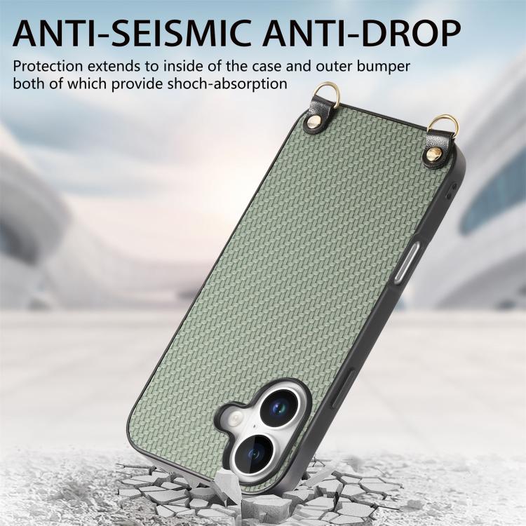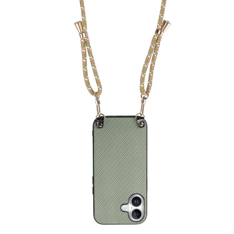 Funda de cuero con textura de fibra de carbono y correa cruzada para iPhone 17 (verde)
