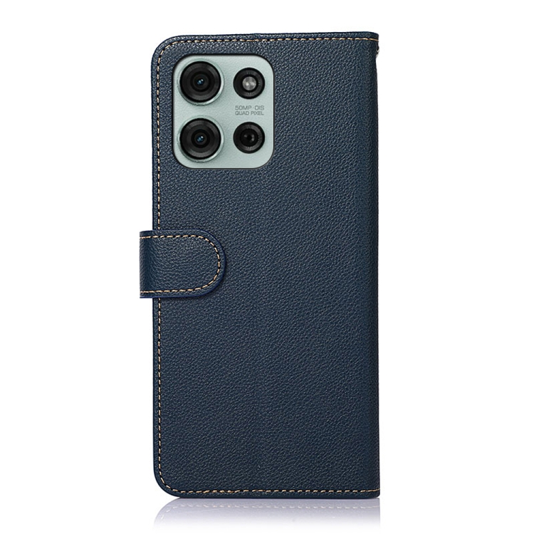 Funda de Cuero Khazneh Rfid para Motorola Moto G75 5G (Azul) con Textura de Lichi