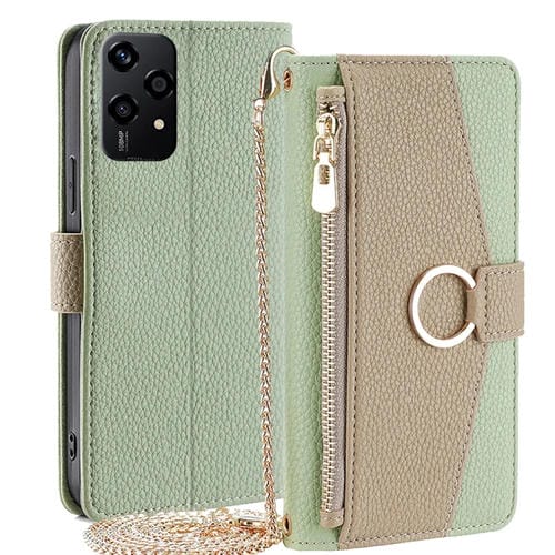 Funda de Cuero con Textura de Lichi y Bandolera para Honor 200 Lite 5G (Verde)