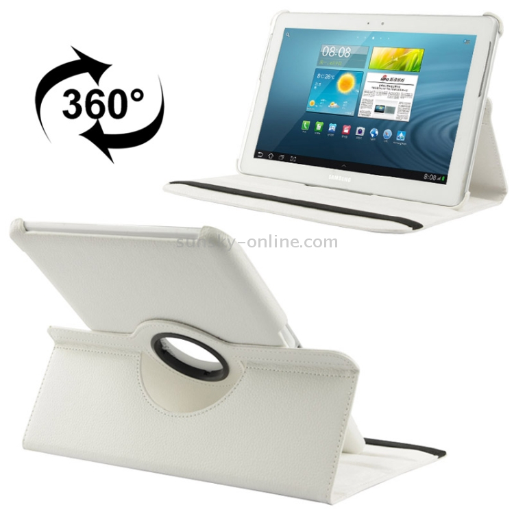 Funda de Cuero Giratoria 360° con Soporte para Galaxy Tab 2 (10.1) P5100 (Blanco)