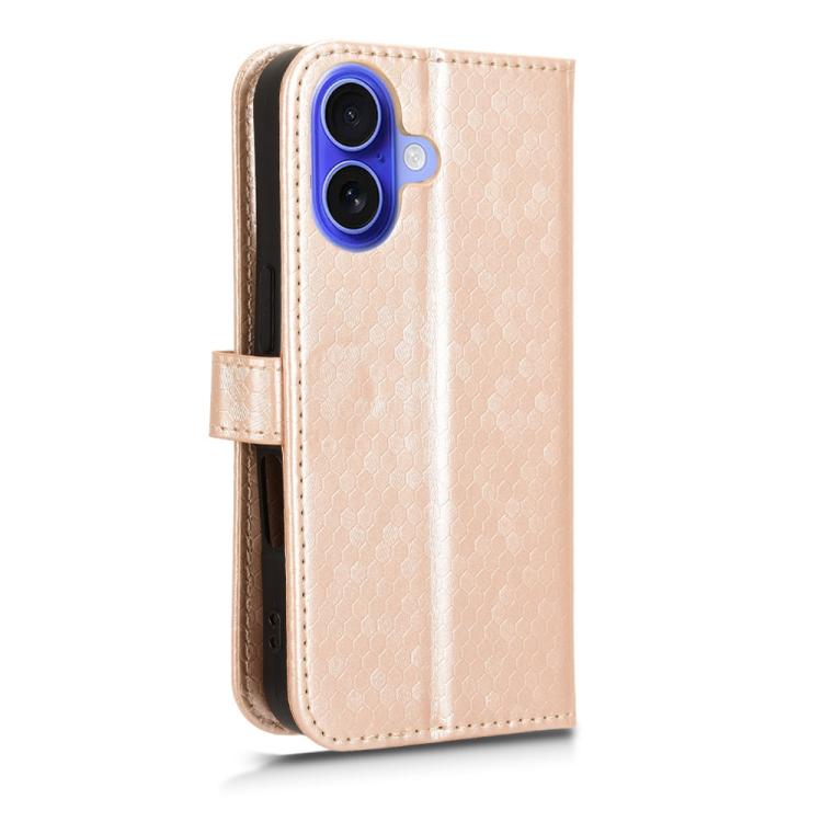 Funda de cuero con textura de lunares y panal para iPhone 17 (dorada)