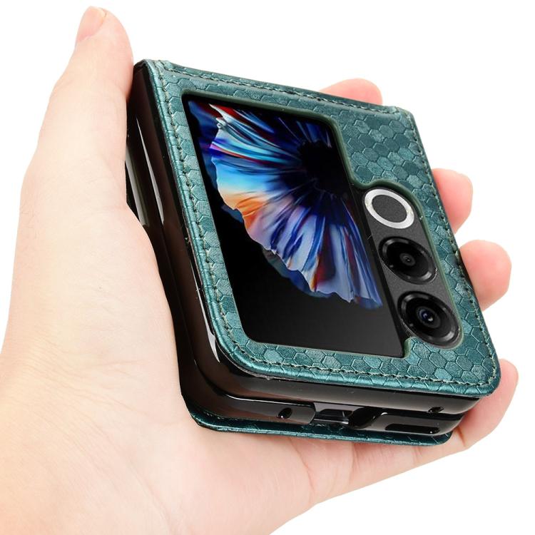 Funda de Cuero con Textura de Panal y Ranura para Tarjetas para ZTE Nubia Flip2 A404Zt (Verde)