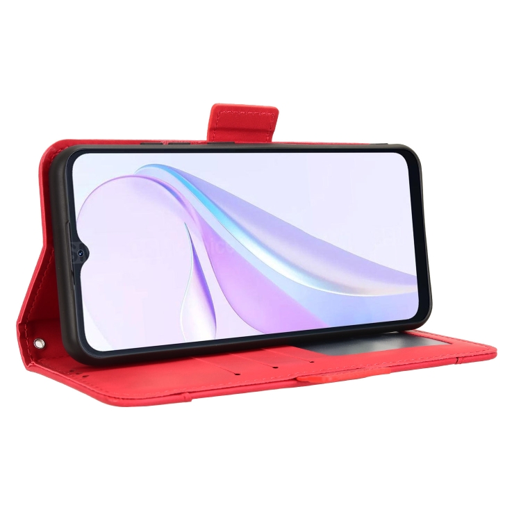 Funda de Cuero con Textura de Piel de Becerro y Ranuras para Tarjetas para BlackView Wave 6C (Rojo)