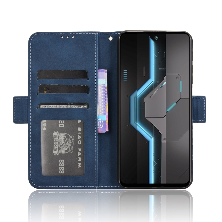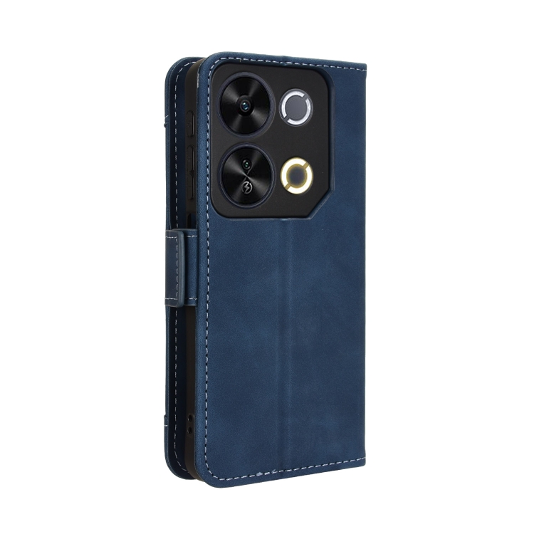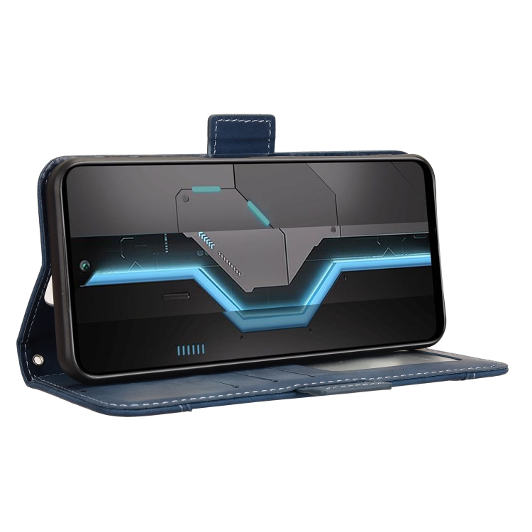 Funda de Cuero Itel P65 4G con Textura de Piel de Becerro y Ranuras para Tarjetas (Azul)