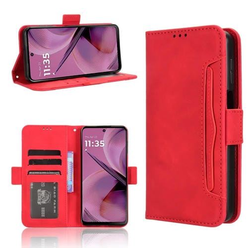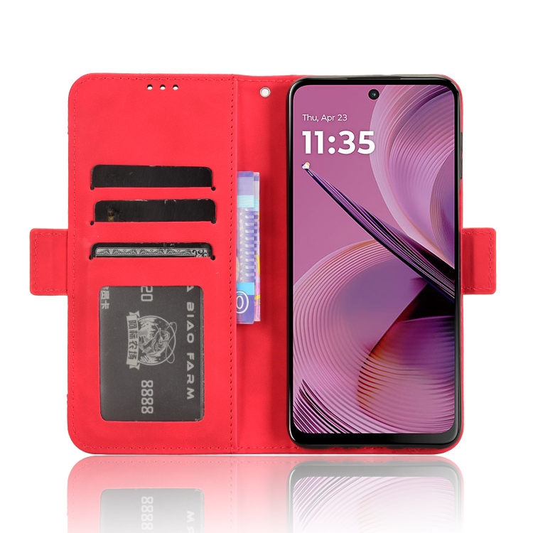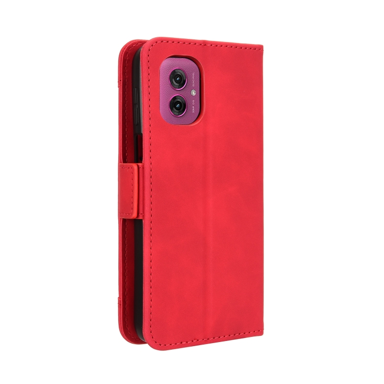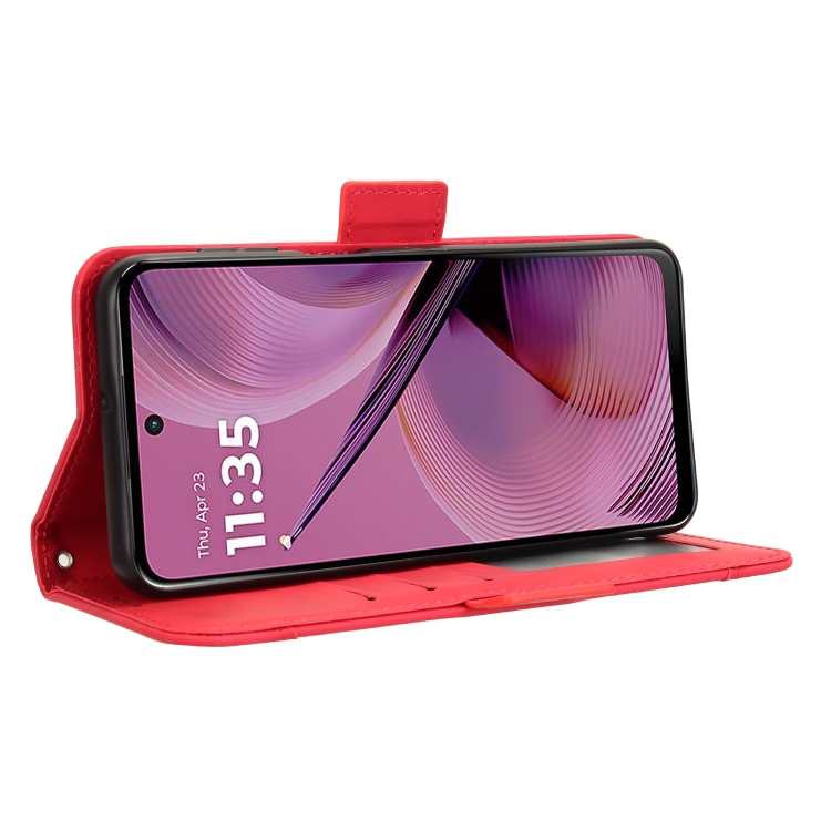 Funda de Piel con Textura de Becerro y Ranuras para Tarjetas para Motorola Moto G55 5G (Roja)