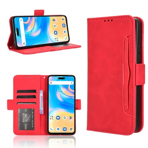 Funda de Cuero para Umidigi G6 5G con Textura de Piel de Becerro y Ranuras para Tarjetas (Rojo)