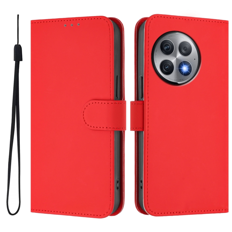 Funda de Cuero para OnePlus Ace 2 Pro 5G con Textura de Piel y Cordón (Rojo)