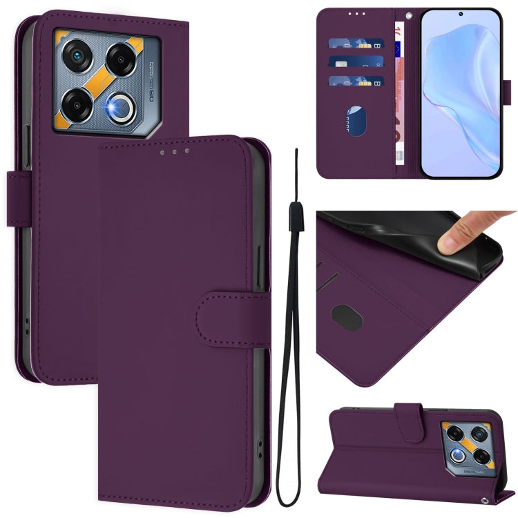 Funda de Cuero para Infinix GT 20 Pro 5G con Textura de Piel y Cordón (Violeta)