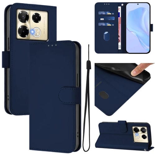 Funda de Cuero con Textura para Infinix Note 40 Pro 4G con Cordón (Azul Marino)