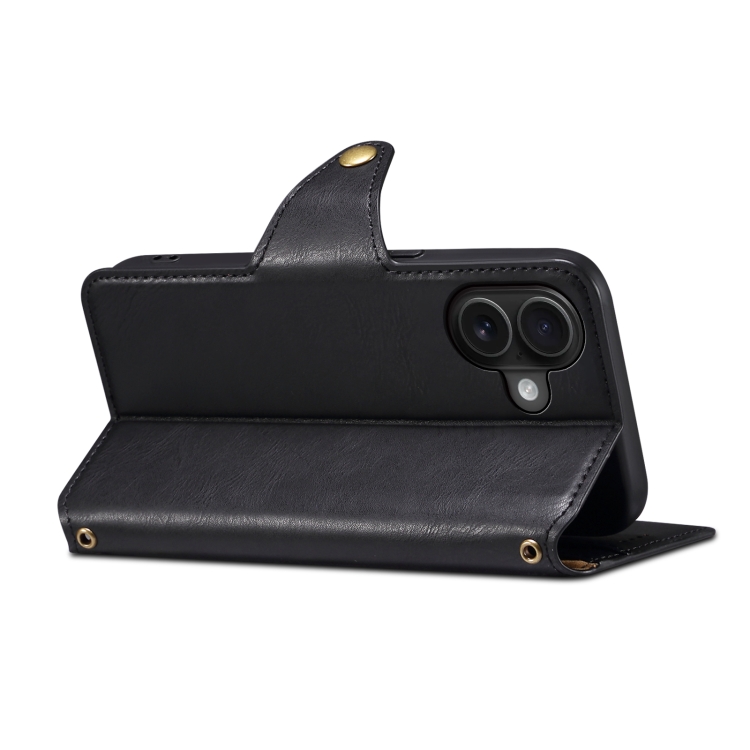 Funda de Cuero Denior para iPhone 16 Plus Estilo Billetera (Negro)