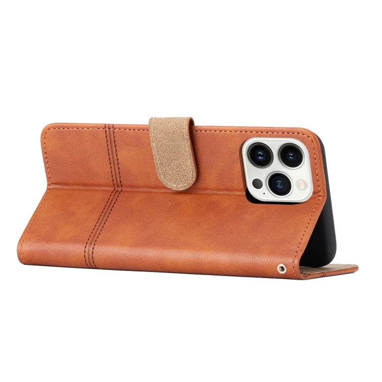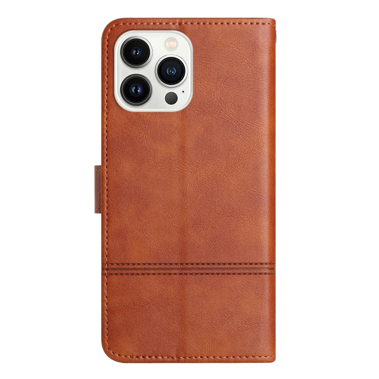 Funda para iPhone 16 Pro Max de Cuero con Textura de Piel de Vaca y Costuras (Marrón)