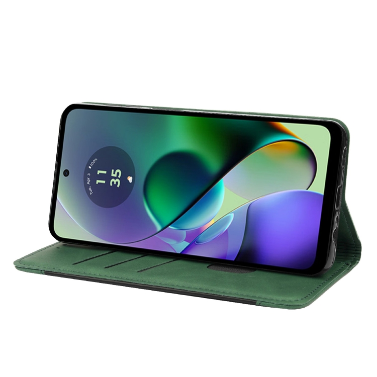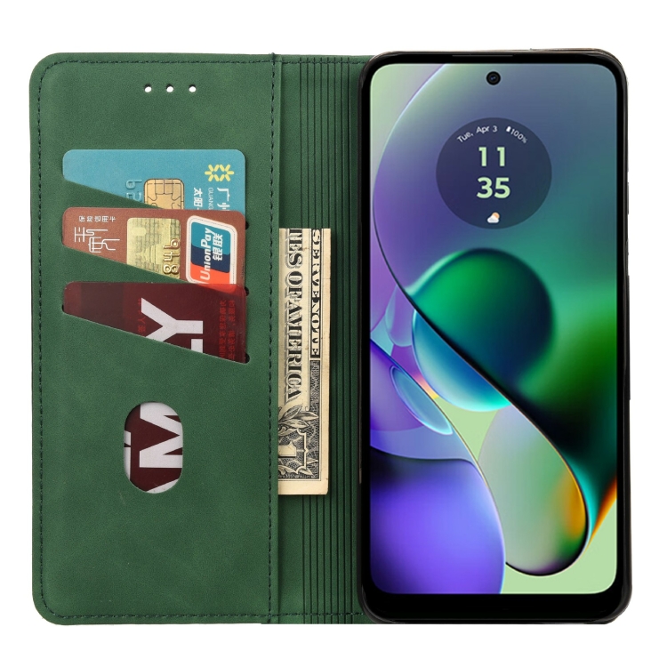 Funda de Cuero con Textura de Piel Sintética para Motorola Moto G55 (Verde)