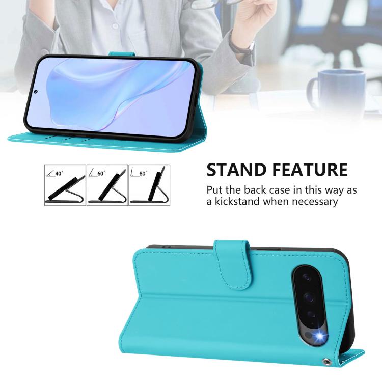 Funda de Cuero con Textura de Piel y Cordón para Google Pixel 10 Pro Xl (Azul Lago)