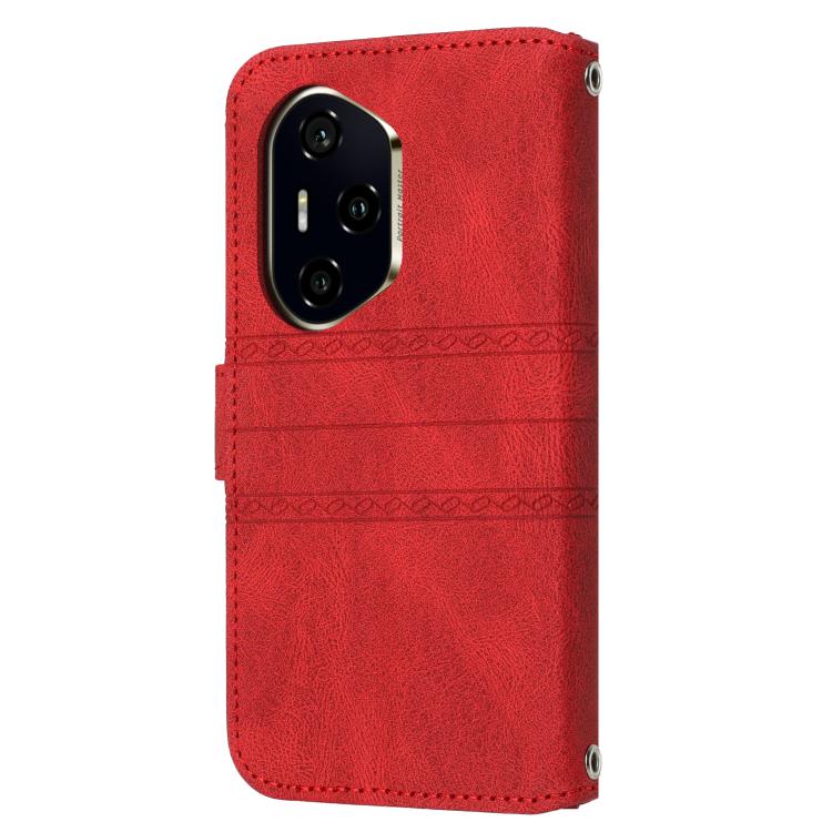 Funda de Cuero con Textura y Rayas en Relieve para Honor 300 Pro 5G/300 Ultra 5G (Rojo)
