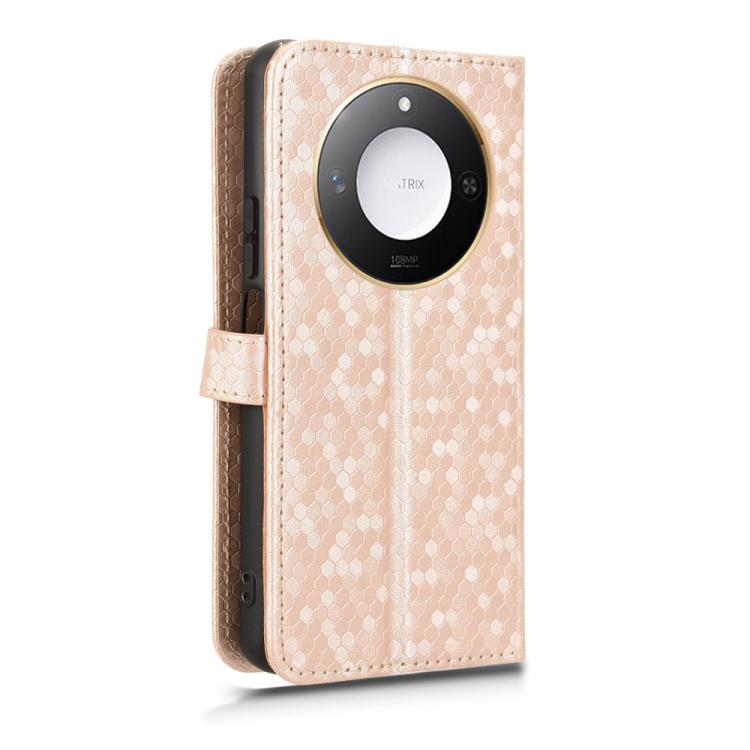 Funda de Cuero con Textura de Puntos Panal para Honor X9C Smart y X60 5G (Dorada)