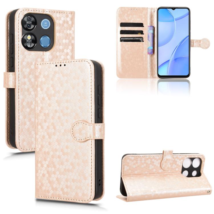 Funda de Cuero para Oukitel C57S con Textura de Puntos en Panal (Dorada)