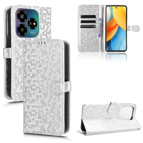 Funda de Cuero para ZTE Blade V60 con Textura de Puntos y Panal (Plateada)