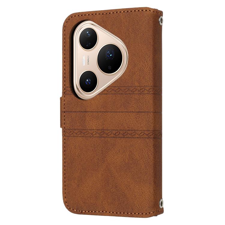 Funda de cuero con textura de rayas en relieve para Huawei Pura 80 5G (marrón)